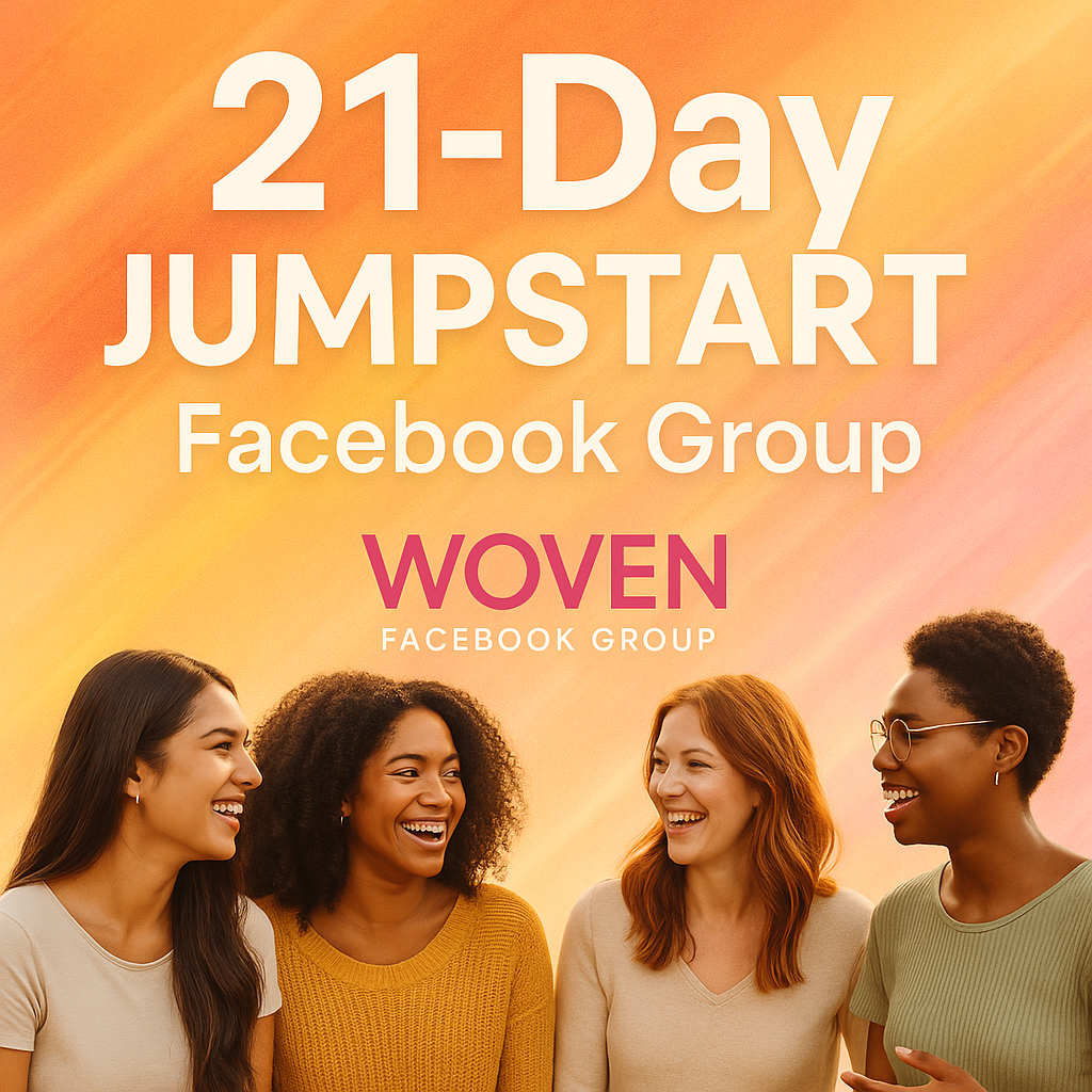 Start each day with purpose, prayer, and sisterhood! Join us LIVE in the WOVEN 21‑Day Jumpstart Facebook Group. It’s free, it’s powerful, and it’s just for women ready to grow deeper in faith and community.